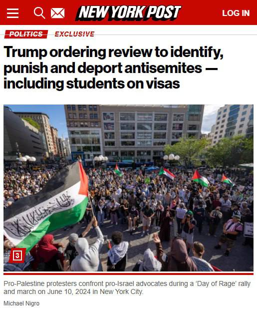 Президент США Дональд Трамп подпишет указ о депортации всех иностранцев-антисемитов, включая студентов.