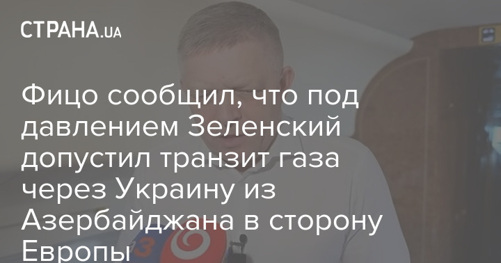 Фицо сообщил, что под давлением Зеленский допустил транзит газа через Украину из Азербайджана в сторону Европы