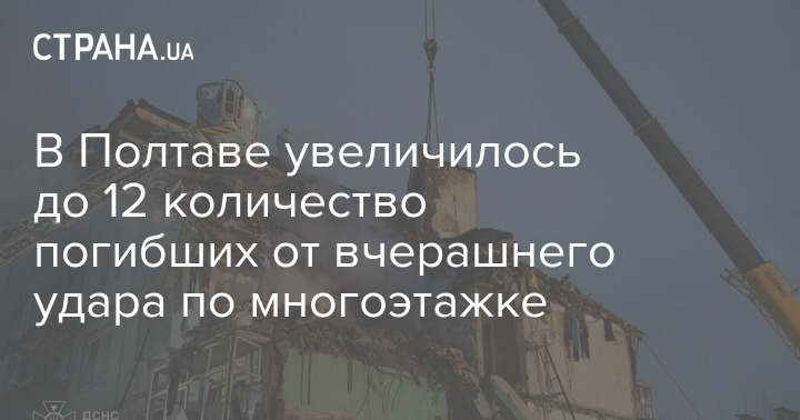В Полтаве до 12 человек увеличилось количество погибших в результате вчерашнего удара по многоэтажке во время атаки РФ. Среди них два ребенка.