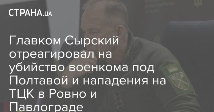 Главком Сырский отреагировал на убийство военкома под Полтавой и нападения на ТЦК в Ровно и Павлограде