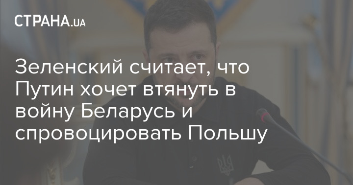 Президент Украины Владимир Зеленский считает, что российский лидер Владимир Путин хочет втянуть в войну Беларусь и спровоцировать Польшу.