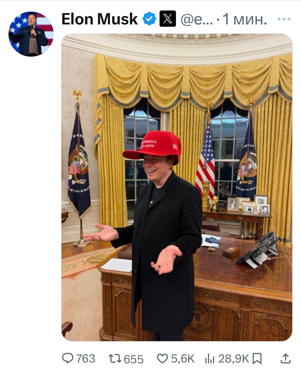 Маск опубликовал фото, как он в компании президента и журналиста Карлсона развлекается в Овальном кабинете