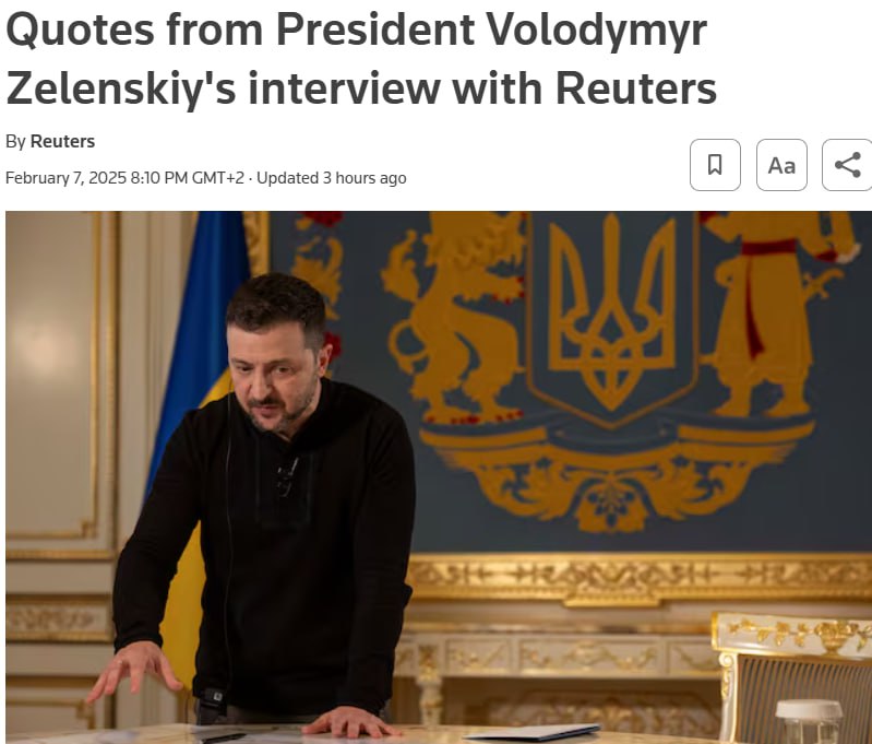 Об этом заявил Владимир Зеленский в интервью Reuters.
