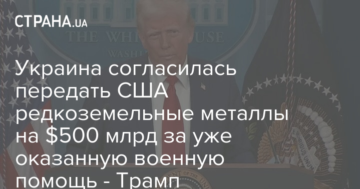 Украина согласилась передать США редкоземельные металлы на $500 млрд за уже оказанную военную помощь - Трамп