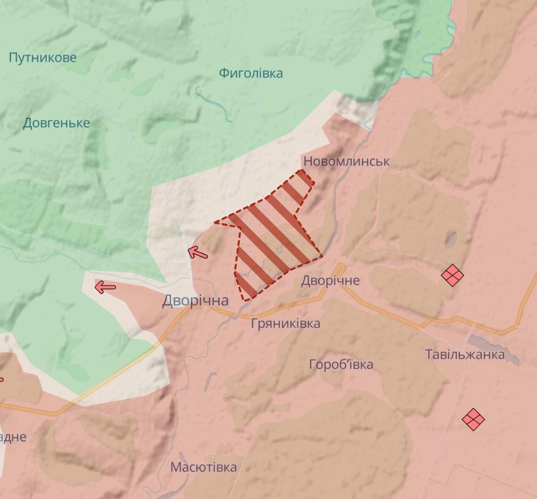 13:53 Армия РФ продолжает наступление западнее Великой Новоселки, свидетельствует карта Deep State.