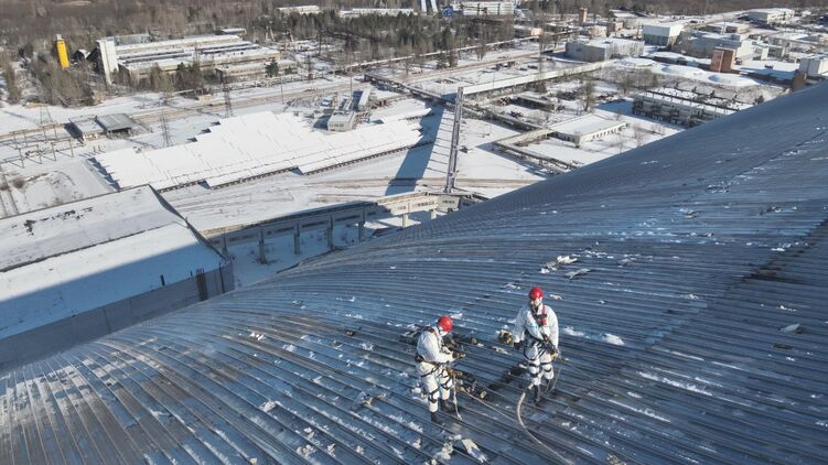 На Чернобыльской атомной электростанции (АЭС) все еще тлеет утеплитель кровли саркофага, который в пятницу, 14 февраля, был атакован российским дроном. Верхолазы вскрывают конструкцию для тушения.