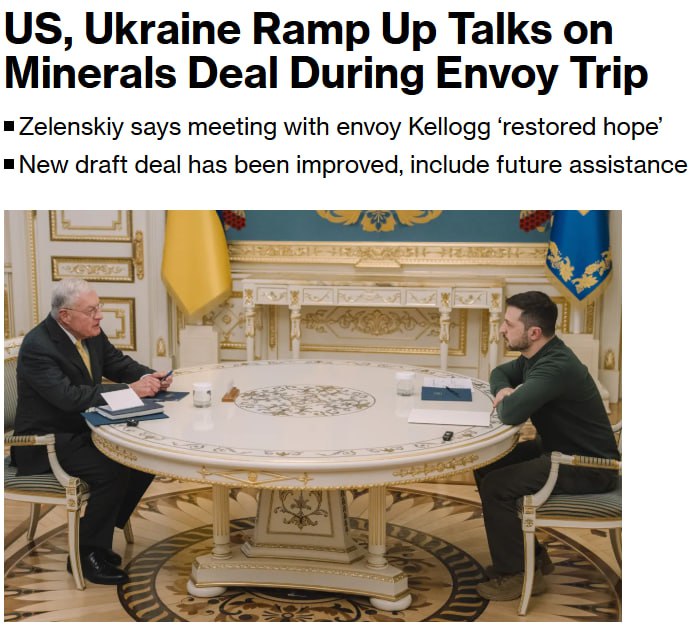 Ранее издание Axios приводило комментарий чиновника администрации Трампа, заявившего, что соглашение о полезных ископаемых - это "сэндвич с дерьмом", который "Украине придется проглотить", потому что на этом настаивает президент США.