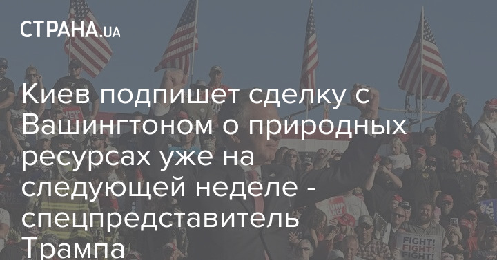 Президент Украины Владимир Зеленский подпишет сделку, передающую США контроль над добычей и реализацией полезных ископаемых Украины, в течение следующей недели.