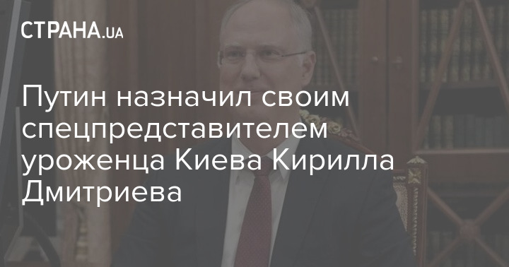 Российский лидер Владимир Путин назначил уроженца Киева, главу Российского фонда прямых инвестиций Кирилла Дмитриева спецпредставителем президента по инвестиционно-экономическому сотрудничеству с зарубежными странами.