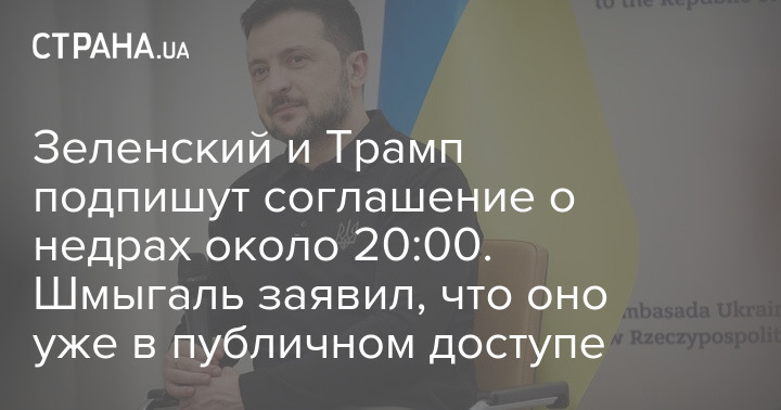 Президент Владимир Зеленский и президент США Дональд Трамп подпишут соглашение о недрах около 20:00 по Киеву.