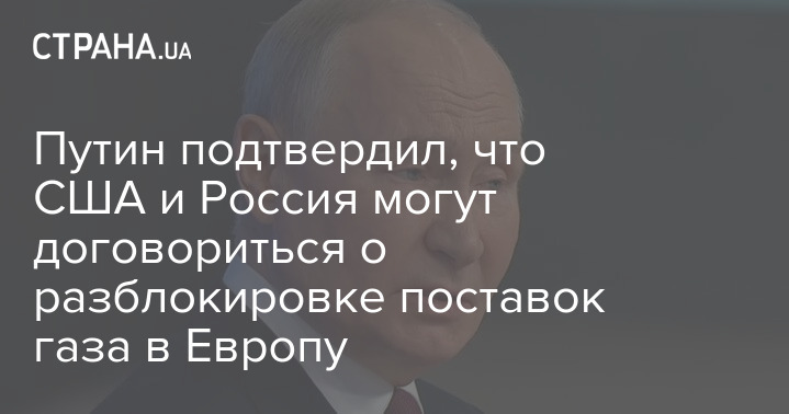 Путин подтвердил, что США и Россия могут договориться о разблокировке поставок газа в Европу