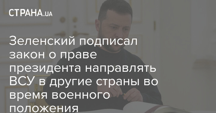 Владимир Зеленский подписал принятый парламентом закон о праве президента Украины направлять подразделения Вооруженных сил в другие государства в период действия военного положения для обеспечения национальной безопасности.