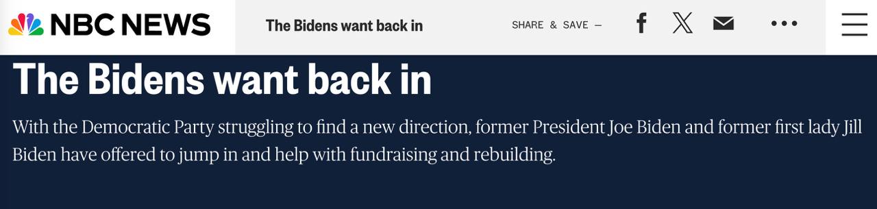 "Пока что попытка Байдена, похоже, не удалась. Демократы плывут по течению, разыскивая убедительного посланника. Кто бы это ни был, это не Байден, утверждают многие партийные активисты и спонсоры. Его связывают с поражением 2024 года и в свои 82 года Байден является скорее символом прошлого партии, чем ее будущего, утверждают они", - говорится в статье.
