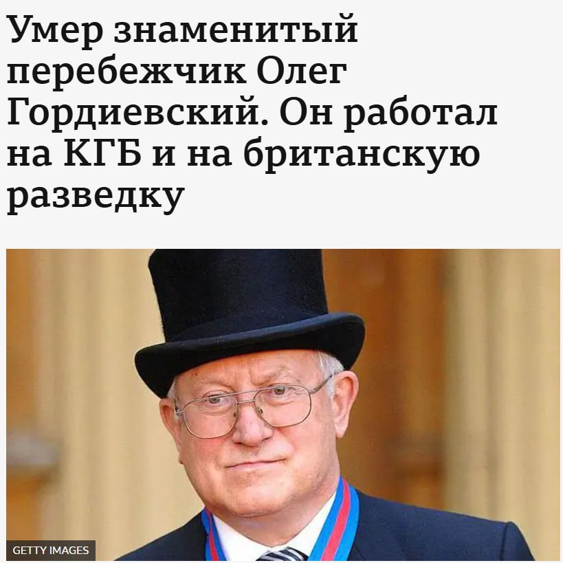 В Великобритании у себя дома на 87 году жизни умер Олег Гордиевский, которого называют одним из самых известных шпионов XX века. Причины смерти не называются.