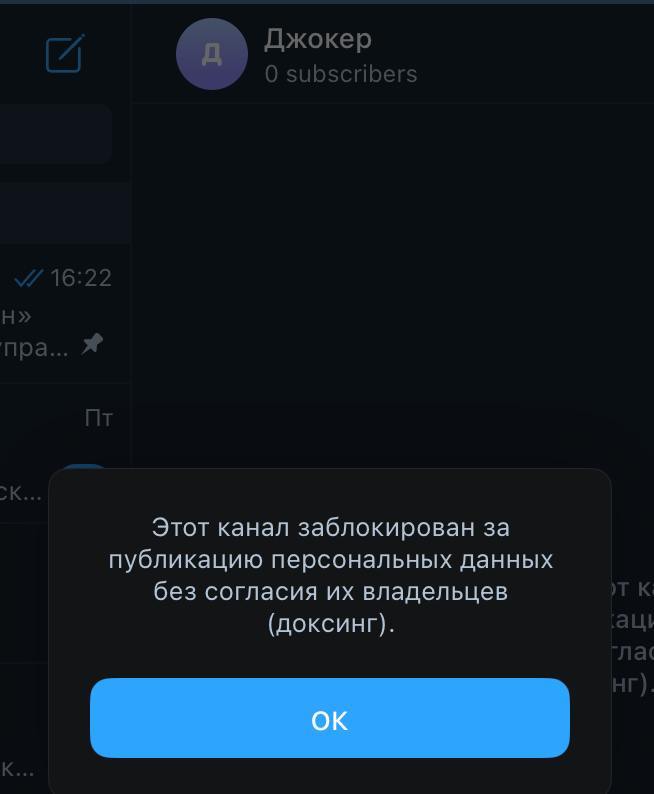 Как указывается в сообщении, блокировка произошла из-за публикации персональных данных без согласия их владельцев (доксинг).