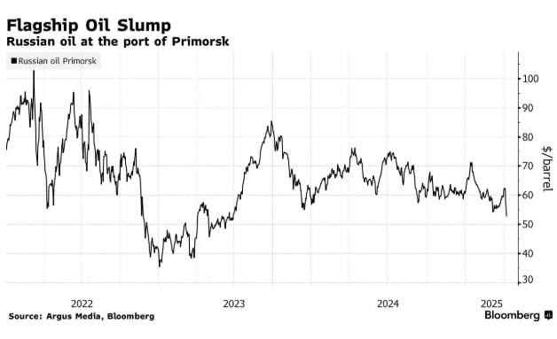 Падают и цены на российскую нефть марки Urals. По данным Argus Media, в пятницу в балтийском порту Приморск они упали до $52,76 за баррель. Агентство Bloomberg сегодня написало о падении цены до $50 за баррель.