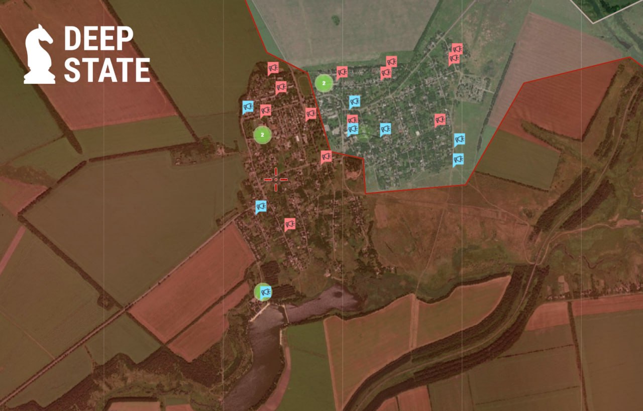 При этом карта паблика Deep State свидетельствует о продвижении российских войск в районе этого населенного пункта, хотя он частично указан еще под контролем ВСУ.