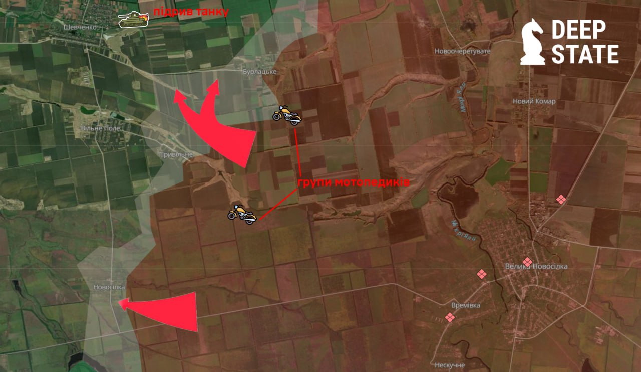 Армия РФ пытается выйти к окрестностям населенного пункта Шевченко возле Великой Новоселки в Донецкой области.