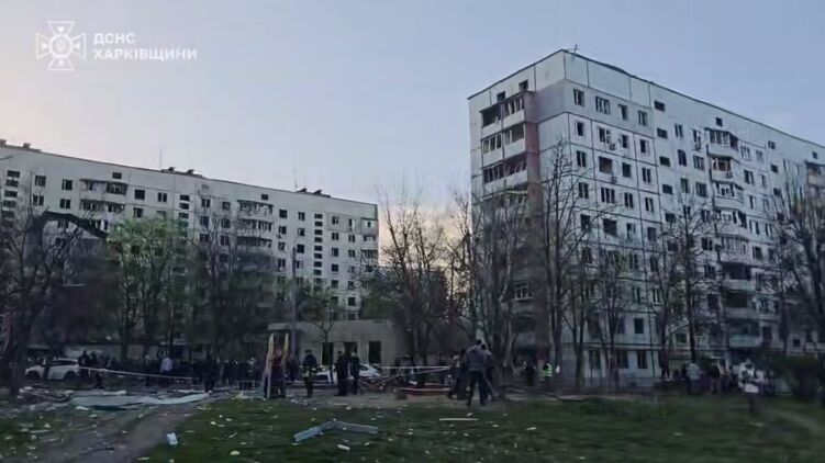 Удар был по жилому кварталу и гражданскому предприятию в Харькове. Повреждены многоэтажные жилые дома, учебное заведение, легковые автомобили.
