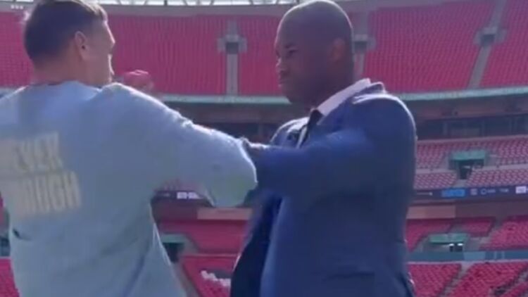 Накануне второго поединка украинский боксер Александр Усик и британец Даниэль Дюбуа встретились на лондонском стадионе "Уэмбли". Боксеры устроили дуэль взглядов, во время которой британец толкнул украинца.