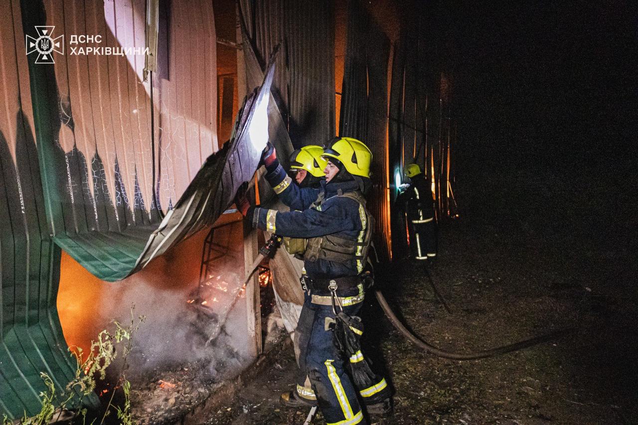 10.37 В поселке Васищево под Харьковом ночью "Шахеды" атаковали два гражданских предприятия, начался масштабный пожар, сообщает ГСЧС.