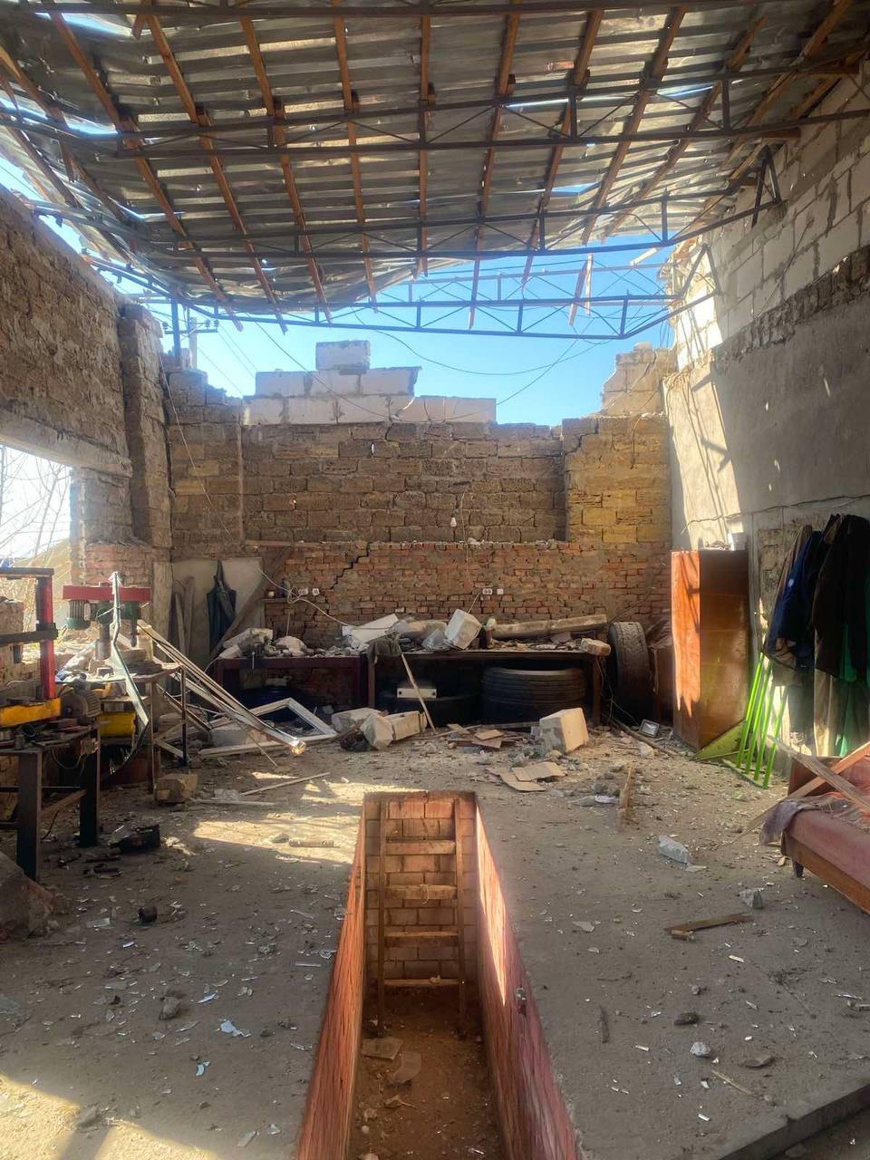 Полностью разрушен технический парк хозяйства и складские помещения.