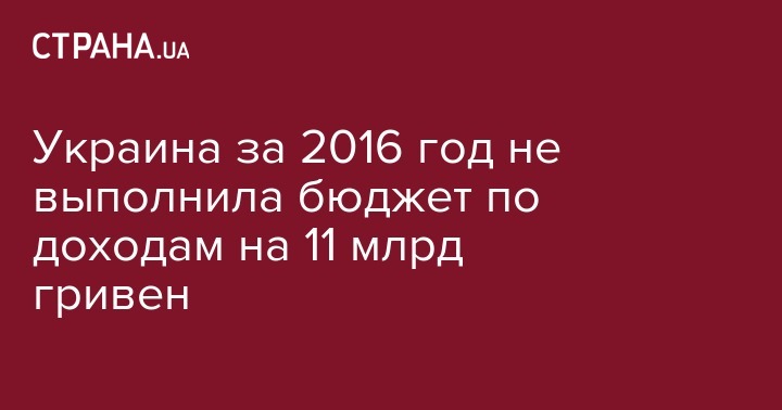 Украина за 2016 год не выполнила бюджет по доходам на 11 млрд гривен