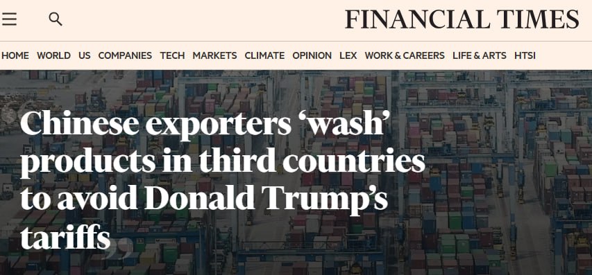 Китайские компании наращивают отправку товаров в третьи страны, чтобы избежать высоких пошлин США - FT