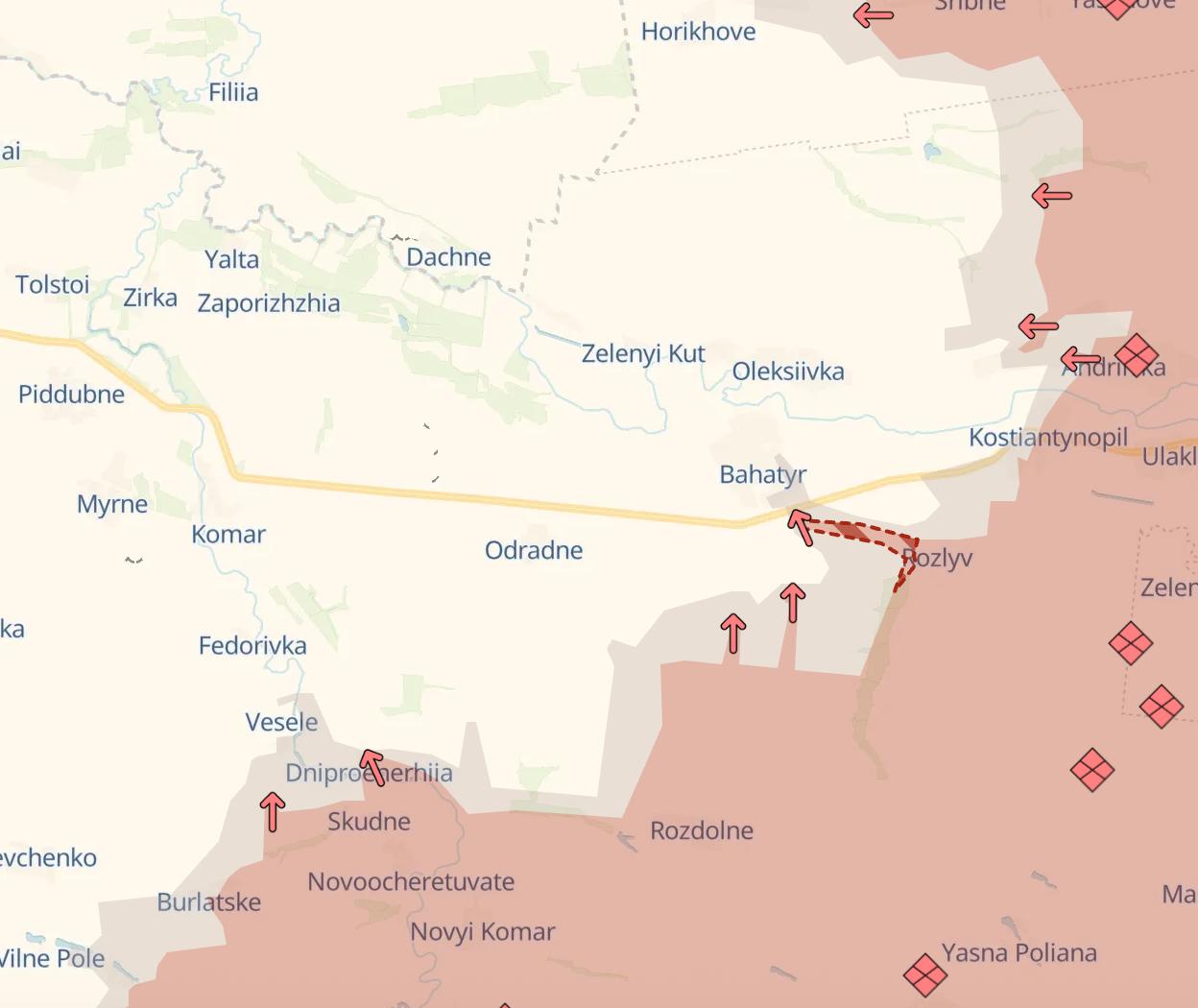 Судя по картам, после Богатыря для российской армии открывается путь на 13 километров вперед без населенных пунктов - до сел Ялта и Запорожье. Откуда чуть более километра до границы Днепропетровской области.