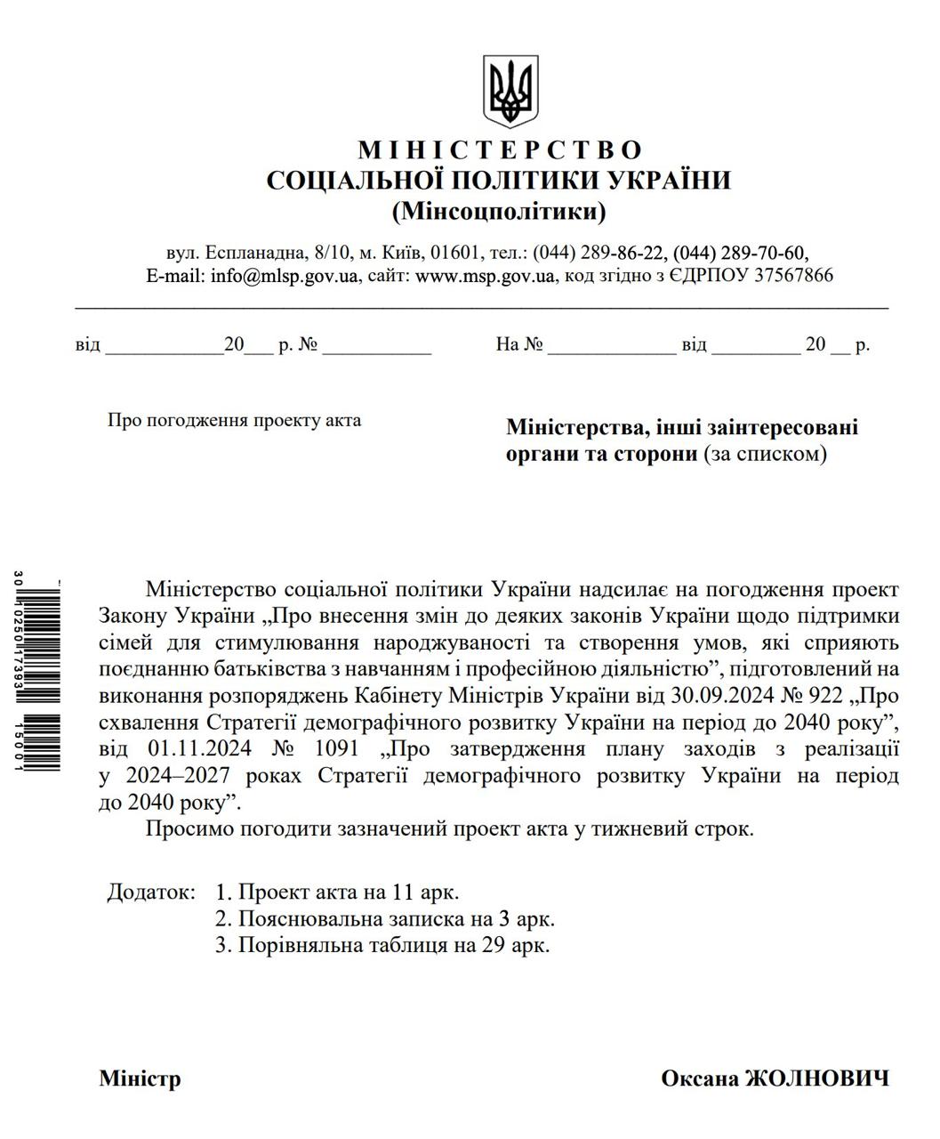 - предоставлять женщинам помощь для восстановления после родов в размере, определенном Кабинетом министров после принятия проекта акта;