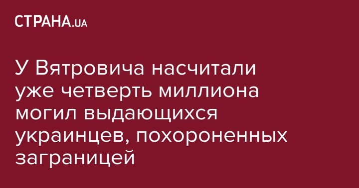 За пределами Украины, по информации Института национальной памяти, захоронены более 250 тыс. выдающихся украинцев. Об этом говорится в сообщении на сайте института.