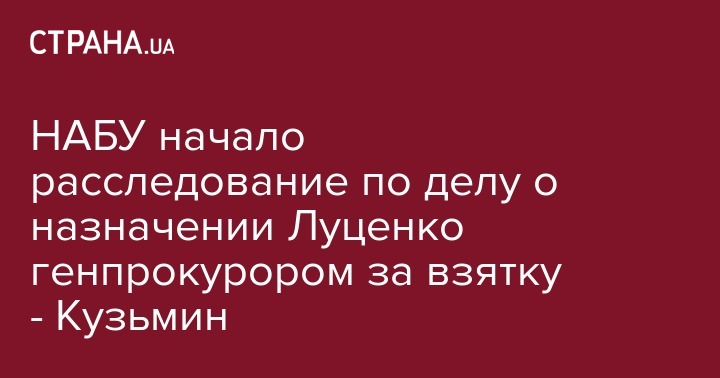 Экс-заместитель генерального прокурора, адвокат Ренат Кузьмин сообщил, что НАБУ возбудило уголовное дело о назначение Юрия Луценко генпрокурором за взятку. Об этом он написал в Facebook.