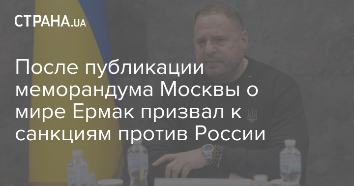 После публикации меморандума Москвы о мире Ермак призвал к санкциям против России