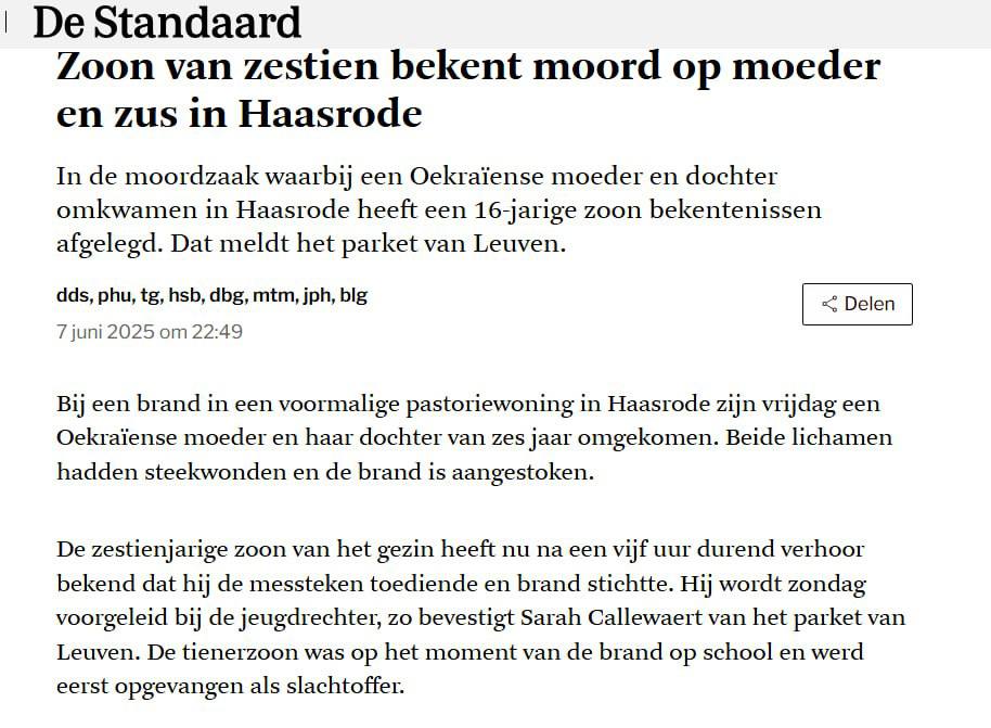 В жестоком убийстве украинки с дочкой в Бельгии признался ее 16-летний сын. Об этом сообщает De Standaard со ссылкой на прокуратуру Лёвена.