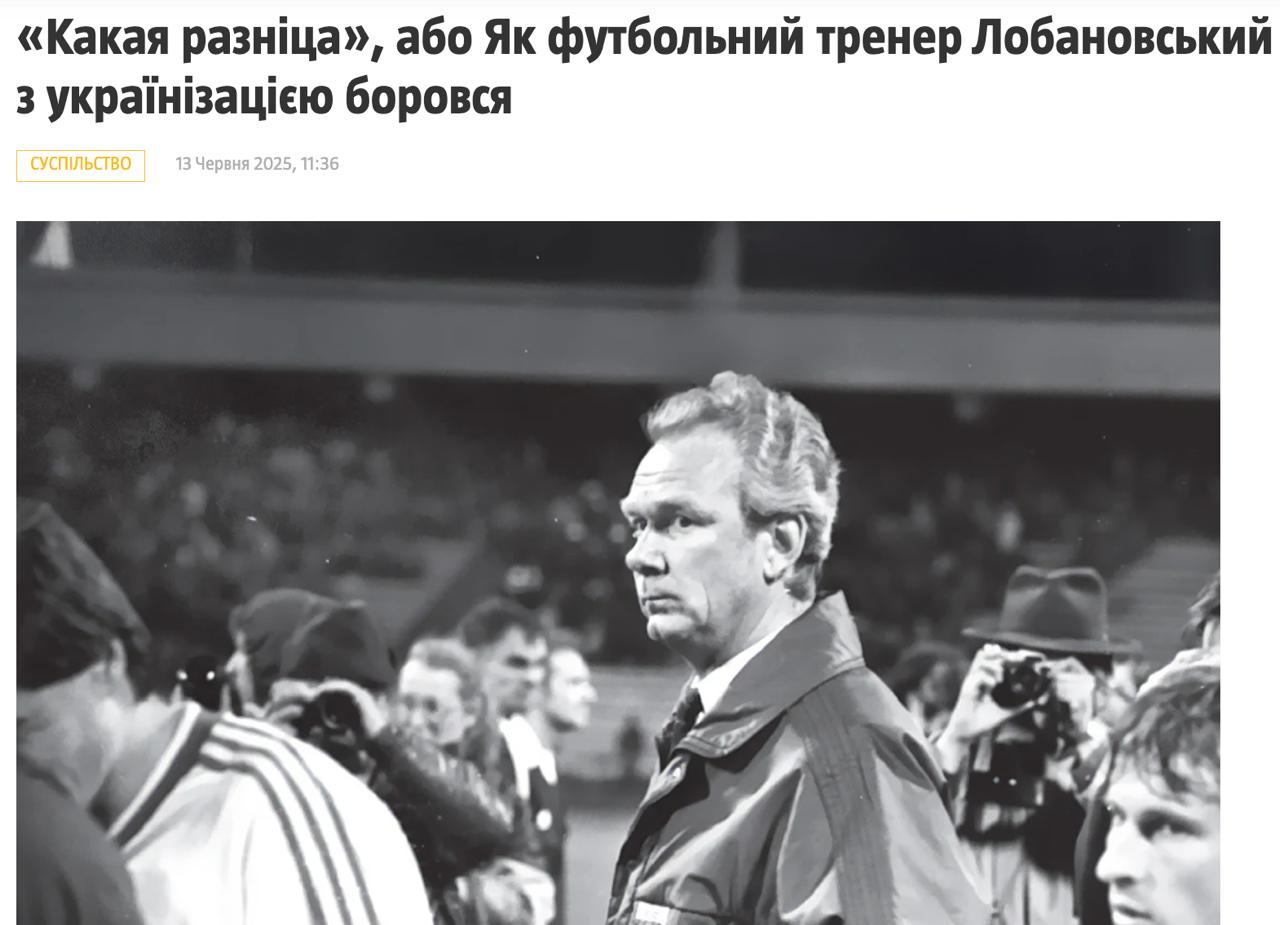 Также в статье приводится фраза Лобановского, опубликованная в газете "Советский спорт", с критикой тех, кто поднимает в Киеве языковой вопрос и заявляет, что украинский язык никогда не ущемлялся.