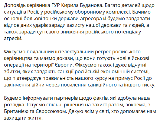 По его словам, был зафиксирован "дальнейший интеллектуальный регресс российского руководства и доказательства того, что они готовят новые военные операции на территории Европы".
