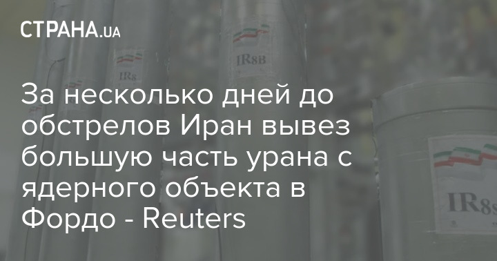 Большая часть иранского обогащенного урана, находившегося на ядерном объекте в Фордо, была вывезена за несколько дней до ударов.