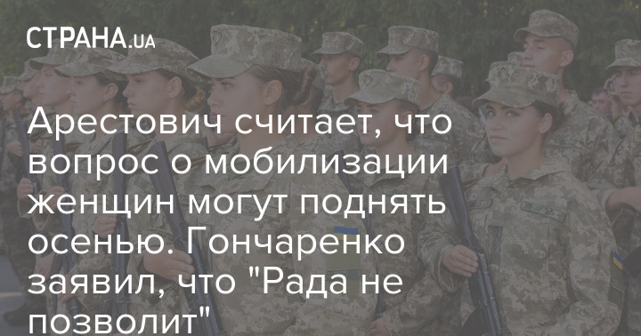 Арестович считает, что вопрос о мобилизации женщин могут поднять осенью. Гончаренко заявил, что "Рада не позволит"