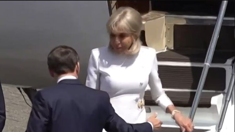 Брижит Макрон демонстративно не подала руку на трапе самолета мужу-президенту