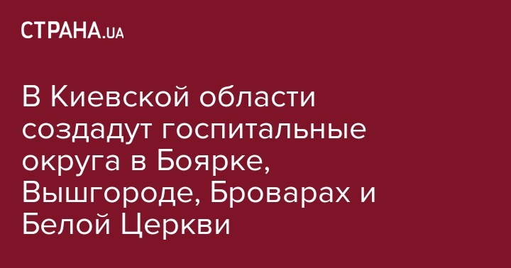 В рамках медреформы в Киевской области создадут четыре госпитальных округа с центрами в городах Белая Церковь, Боярка, Вышгород и Бровары. Об этом сообщает сайт Киевской облгосадминистрации.