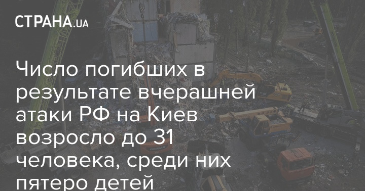 В Киеве до 31 выросло количество жертв после удара России в ночь на 31 июля, среди них пятеро детей. Все поисково-спасательные работы завершены.
