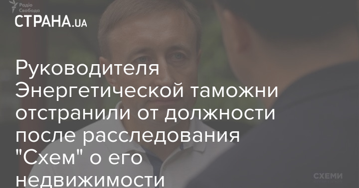 Государственная таможенная служба отстранила от исполнения обязанностей руководителя Энергетической таможни Анатолия Комара на время служебного расследования. Расследование стартовало после выхода материала проекта "Схемы" "Радио Свобода", в котором говорится о дорогой недвижимости чиновника.