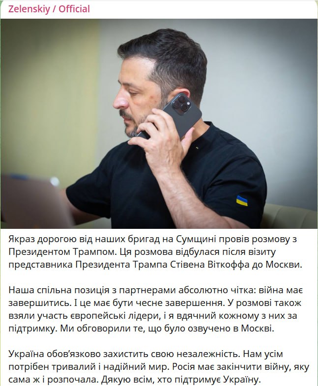 Позже в своем вечернем обращении Зеленский по итогам разговора с Трампом заявил, что Россия "теперь больше настроена на прекращение огня".