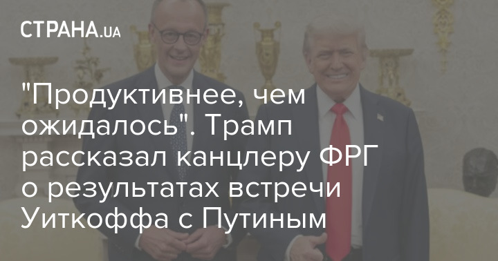 Глава Белого дома Дональд Трамп позвонил канцлеру Германии Фридриху Мерцу и сообщил, что встреча российского лидера Владимира Путина и спецпосланника президента США Стивена Уиткоффа была "продуктивнее, чем ожидалось".