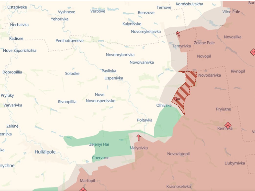 Армия РФ продвинулась возле Темировки и Ольговского Запорожской области, а также в районе Муравки на западе Донецкой области. Такие данные приводит украинский военный паблик Deep State.