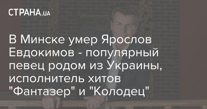 В Минске умер популярный в 1980-е и 1990-е певец родом из Ровно Ярослав Евдокимов, автор и исполнитель шлягера "Фантазер". Ему было 78 лет.