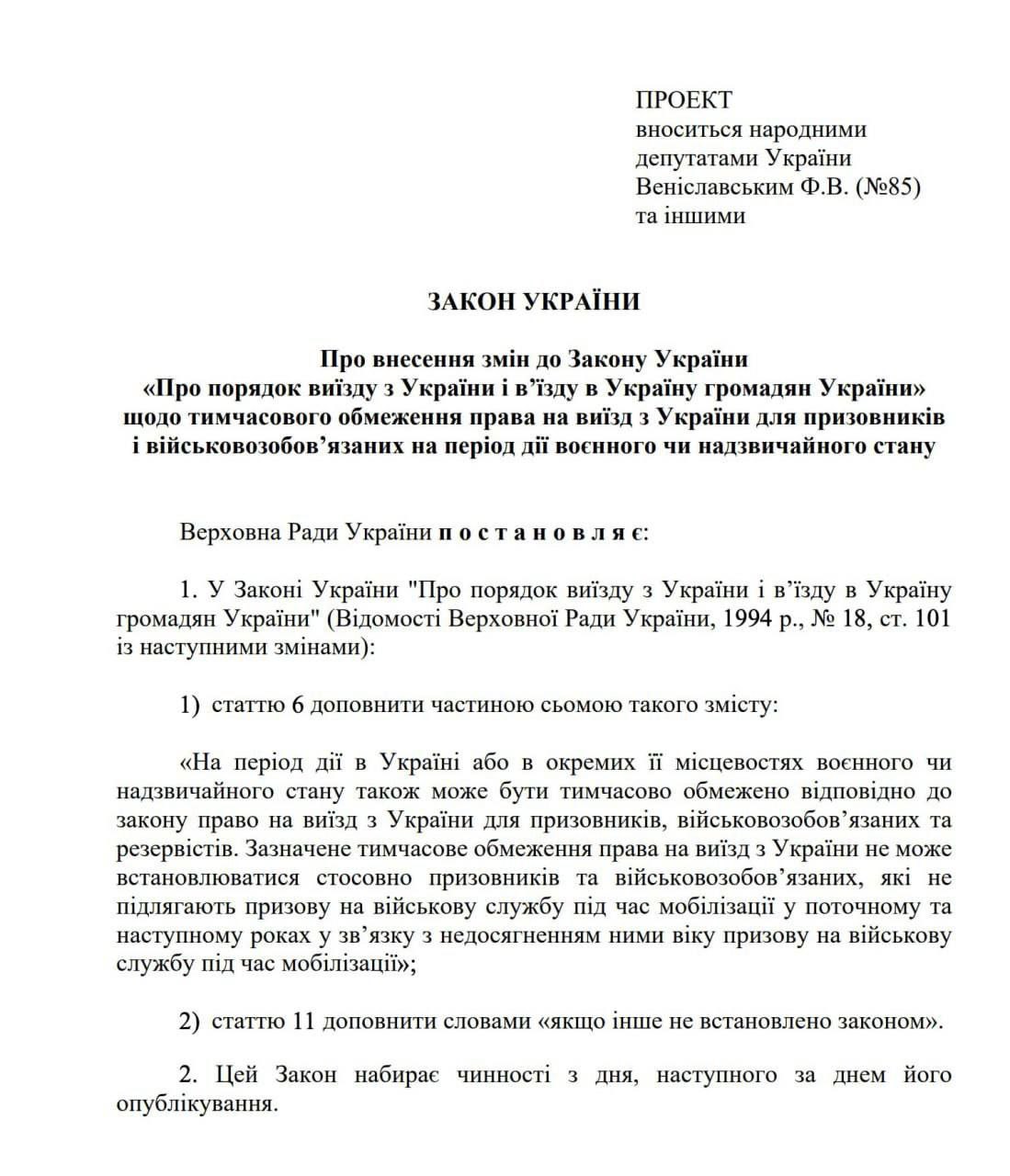 В Верховную Раду внесен законопроект №13685, разрешающий выезд за границу мужчинам в возрасте до 24 лет.