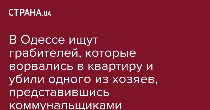 В Одессе ищут грабителей, которые ворвались в квартиру и убили одного из хозяев, представившись коммунальщиками