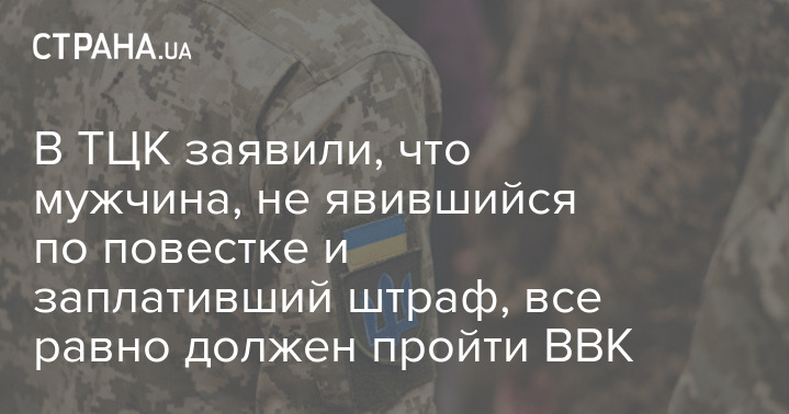 В ТЦК заявили, что мужчина, не явившийся по повестке и заплативший штраф, все равно должен пройти ВВК