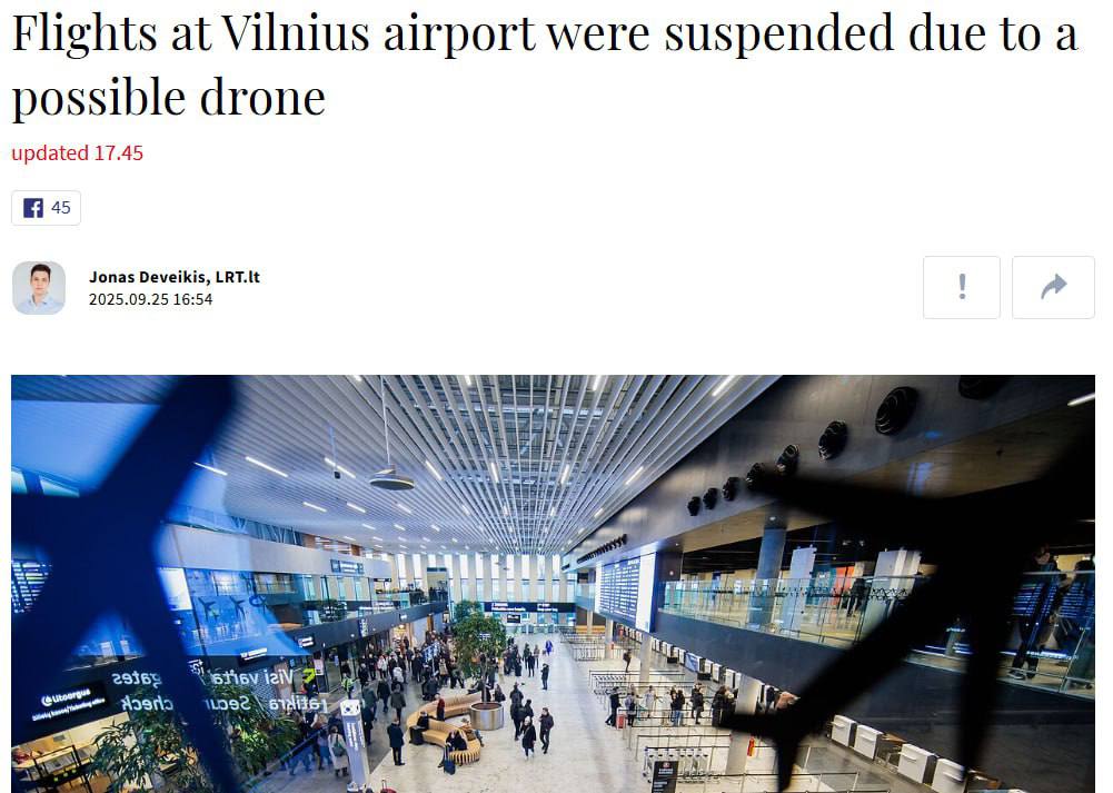 Также беспилотник был замечен в столице Латвии Вильнюсе. Из-за этого были приостановлены предстоящие авиарейсы.